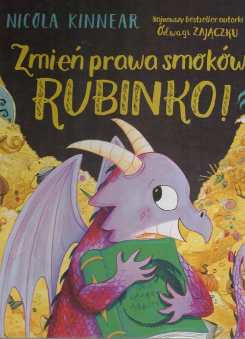 Wszyscy kochamy dzielnego zajączka Logana z Odwagi, zajączku, który dzięki przyjaźni przezwyciężył lęk przed nieznanym. I Lisiczkę z Ciii... Cichutko!, która potrafiła przełamać nieśmiałość, by ratować przyjaciół. Teraz pokochamy Rubinkę – małą smoczycę, która tak bardzo chciała być dobrym smokiem, że z zapałem wypełniała wszystkie zalecenia zapisane w Księdze Praw Smoków: „Smoki straszą innych”, „Smoki zabierają wszystko innym”, „Smoki nie dzielą się z nikim”. I była tym bardzo zmęczona i bardzo samotna. Czy żabka Szmaragdka, gąska Złotka i pegaz Szafirek pomogą Rubince zmienić złe zasady na dobre, by była szczęśliwa, radosna i mogła cieszyć się dzieleniem z innymi i wspólną zabawą? Nicola Kinnear zabiera nas do magicznej rubinowo-szmaragdowo-szafirowo-złotej krainy baśni. Pełna ciepła, wzruszająca, pięknie ilustrowana książka dodaje otuchy i pokazuje, że każdy może zmienić swoje postępowanie, jeśli ma dobre wzorce i wspierających przyjaciół.